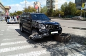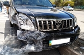 «Біля "Глобала" аварія: Land Cruiser зі сторони Київської повертав до "Макдональдса", зніс сітілайт і в'їхав у парапер», – розповіли читачі.
