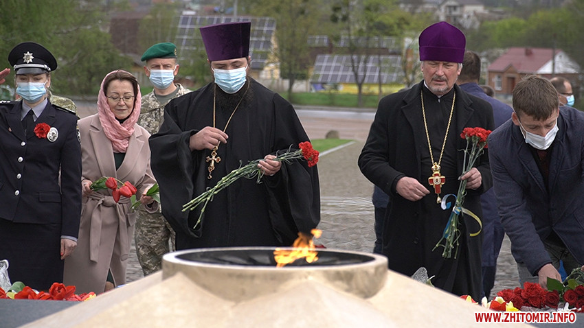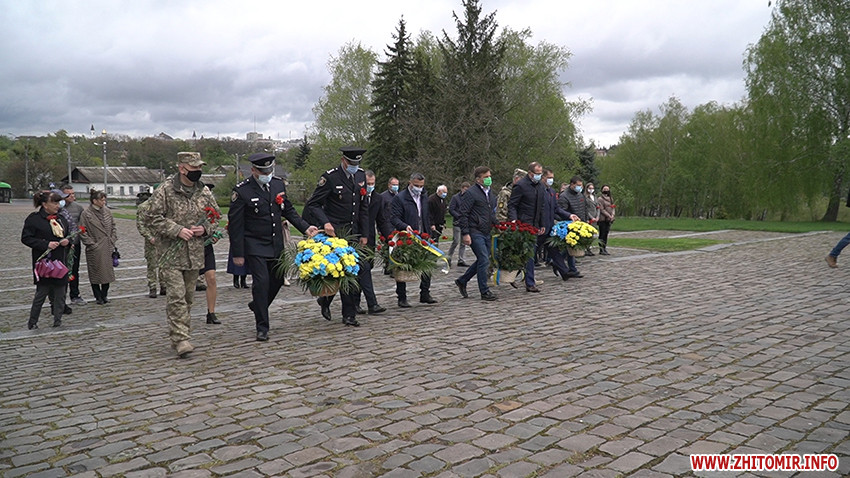 8 травня кілька десятків людей із квітами прийшли до Монумента Слави на вулиці Чуднівській, щоб відзначити День пам’яті та примирення. Цього року біля пам’ятника не виголошували промов. Житомирський міський голова Сергій Сухомлин та голова Житомирської обласної ради Володимир Федоренко, військовослужбовці Збройних сил України та співробітники Національної поліції України разом з житомирянами поклали квіти до «вічного вогню».