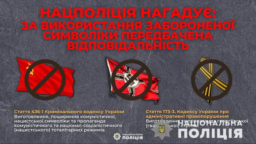 Зауважимо, що 8 травня пресслужба ГУ Нацполіції у Житомирській області нагадала, що за використання забороненої символіки передбачена відповідальність. «Стаття 436 -1 Кримінального кодексу України - виготовлення, поширення комуністичної, нацистської символіки і пропаганда комуністичного та націонал-соціалістичного (нацистського) тоталітарних режимів карається позбавленням волі на строк до п’яти років», – йшлося, зокрема, у повідомленні поліції.
