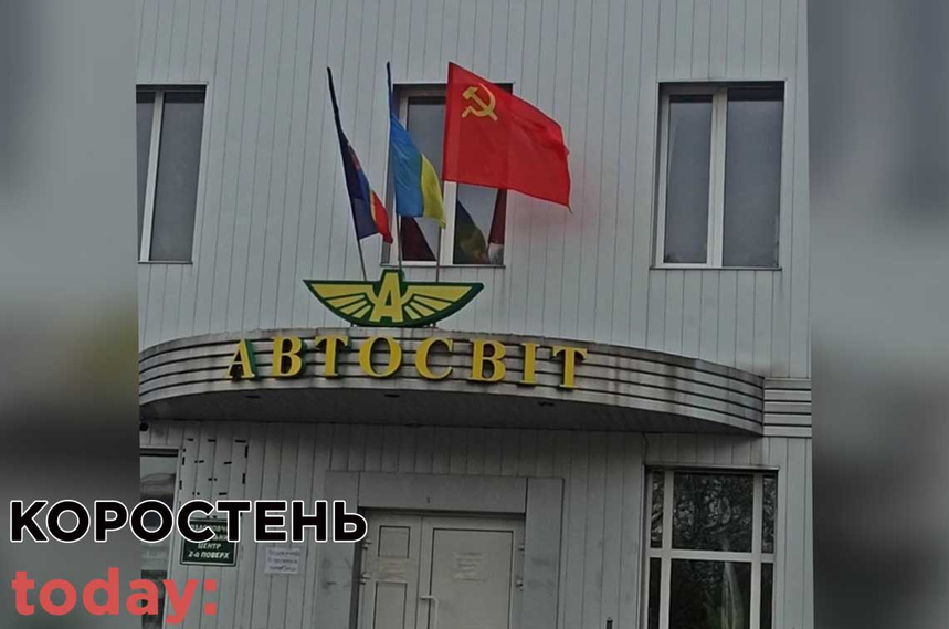 Видання цитує коростенців, які надали відповідну інформацію: «У День пам'яті та примирення ТОВ "Автосвіт ЛТД" вивісило на центральному вході до свого підприємства червоний прапор із серпом та молотом».