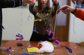 “Сьогодні наш майстерклас називається “Пташина сім’я”. Ми будемо говорити про сім'ю, її цінності та виготовляти мотанку-пташку “тата”, “маму” та “діток”. Їх ми розміщуватимемо на спеціальному дереві. Пташки-мотанки кріпляться на довгих нитках не просто так, а для того, щоб вони могли “літати”. Традиційно наші предки розміщували такі мотанки на сволоку та біля вікон. Коли люди ходили по хаті, повітря рухалося і пташки на довгих нитках починали “літати”. Пташки мали символічне та сакральне значення”, - говорить Анна Івченко.