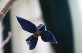 Пташка майже готова. Щоб зафіксувати і зробити кріплення, робочу нитку ведемо через верх одного крила, а другу нитку - через низ протилежного крила і зав'язуємо їх зверху на спинці.