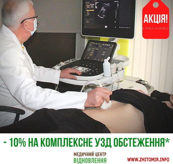 Запис на УЗД за телефоном 0 800 305 860, особисто – за адресою: м. Житомир, вул. Любарська, 4 або замовте зворотній зв'язок на сайті https://vidnovlennya.center/