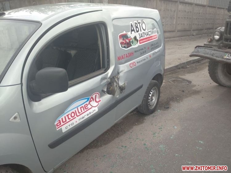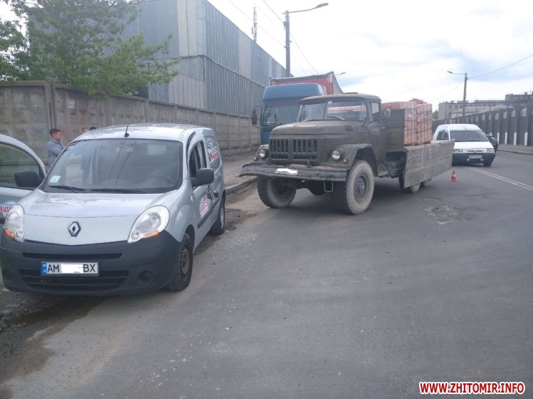 «14 травня о 14:00 на проспекті Незалежності водій автомобіля ЗІЛ 131, 1949 р.н., перед поворотом праворуч на прилеглу територію, не врахував дорожньої обстановки, не зайняв відповідне крайнє положення та не надав переваги в русі транспортному засобу, що рухався в попутному напрямку, в результаті чого зіштовхнувся з Renault Kangoo, під керуванням жителя Житомирського району, 1999 р.н. У результаті ДТП автомобілі отримали механічні пошкодження. На водія вантажівки було складено протокол за ст. 124 КУпАП», - розповіли у пресслужбі патрульної поліції.