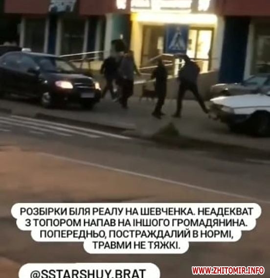 Увечері, 15 травня, по вулиці Шевченка в Житомирі один чоловік напав на іншого з сокирою.