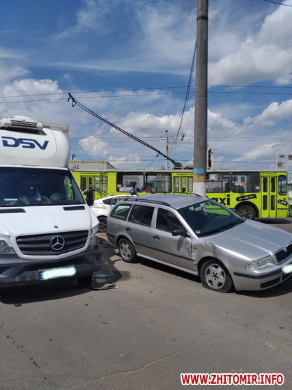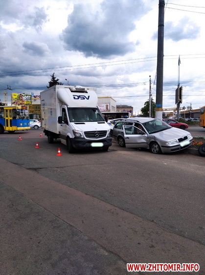 Вдень 16 травня на перетині вулиць Київської та Івана Сльоти у Житомирі зіткнулися автомобілі Mercedes та Skoda.
