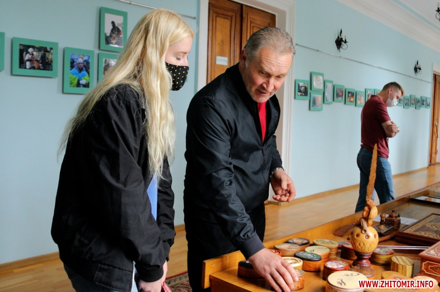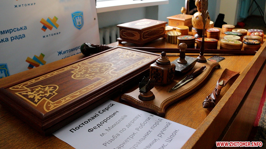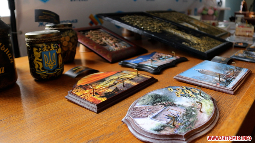 Протягом тижня у Житомирі триватиме виставка «Військовий сувенір». На другому поверсі міськради власні вибори представили ветерани, військовослужбовці, воїни миротворчих місій, рідні загиблих учасників бойових дій з Житомира та з інших українських міст. Серед робіт: фотографії, картини, одяг, дерев’яні шкатулки, годинники та світильники.