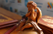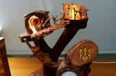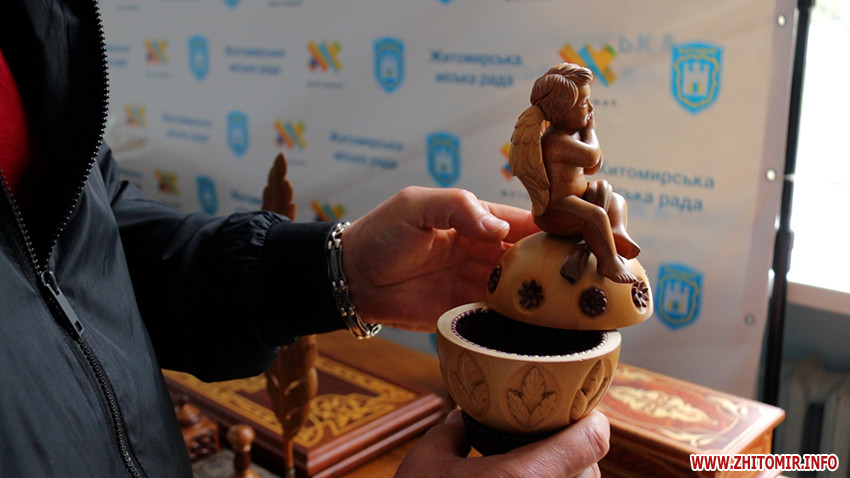 «Ось привезли шкатулочки з різних порід дерева, розписані шкатулки. Ось таку тростину робили, де використовували натуральні матеріали: перли, бірюза, чорне дерево, бивень мамонта, малахіт. Хотілося мати якусь гарну річ, але вони дуже дорогі і я почав з журнального столика. Шукав майстра і ось знайшов хлопця, який навчався у нас в інституті по різьбі, він професіонал. Я замовив собі столик, де чотири кобри тримають стільницю. Я побачив в ньому спеціаліста і почали разом це робити й з того часу ми почали займатися, адже купити у мене не виходило такі речі і я подумав, що мені простіше таке робити», - каже учасник виставки Сергій Постолакі.