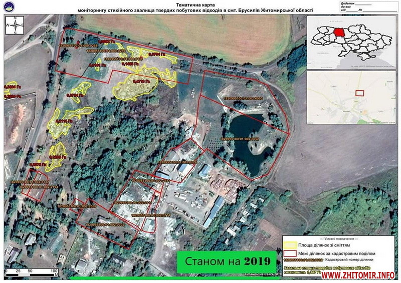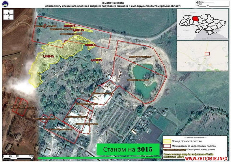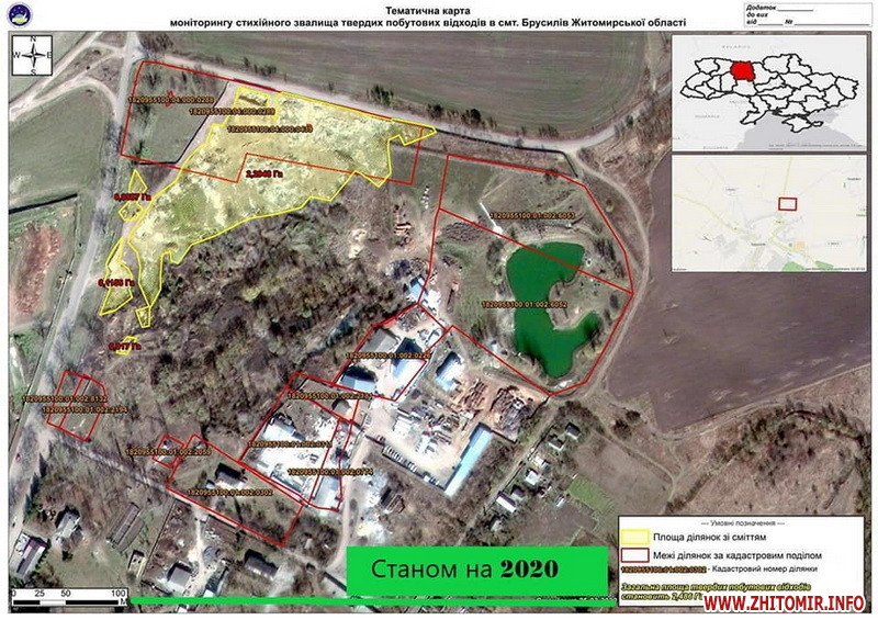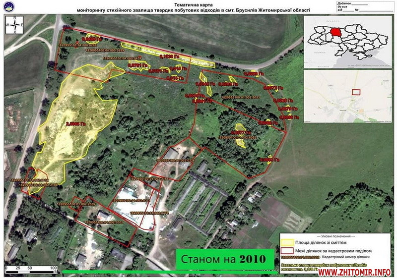 «На адресу Державної екологічної інспекції Поліського округу надійшли інформаційні матеріали від Національного центру управління та випробувань космічних засобів щодо супутникового екомоніторингу розростання стихійного звалища твердих побутових відходів, що розташоване в смт Брусилів Житомирської області за результатами обробки даних дистанційного зондування Землі. Зокрема за результатами супутникового моніторингу проведеного у період з 2010 по 2020 роки з використанням супутникових даних виявили факти використання земельних ділянок в смт Брусилів під звалища твердих побутових відходів. Протягом вказаного періоду площа звалищ змінювалась від 1,387 га до 3,118 га і станом на останню дату зйомки, а це 25.03.2020 року складала 2,486 га»,- йдеться у повідомленні.