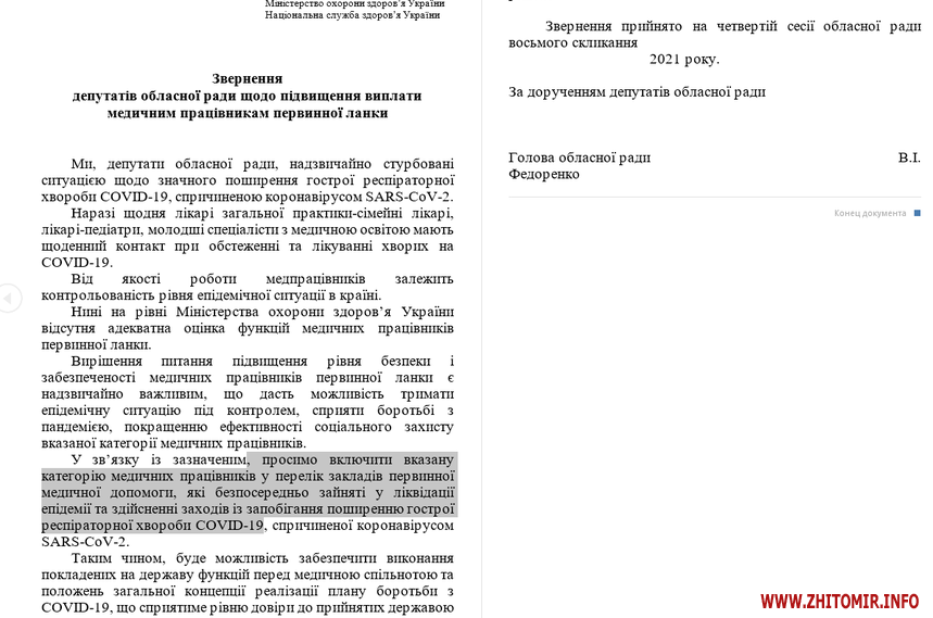 Підвищення виплати працівникам первинної ланки медицини просять депутати Житомирської обласної ради.