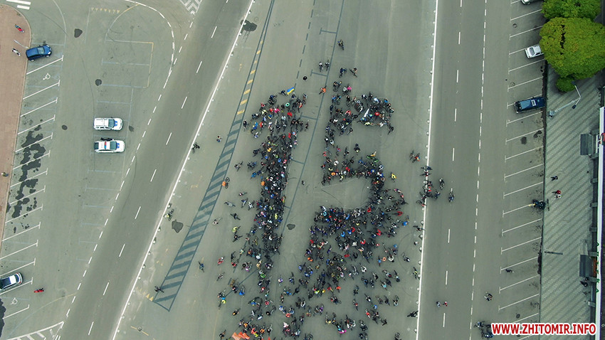 Після фінішу, велосипедисти сформували велику цифру «15» на честь проведення ювілейного Велодня у Житомирі.