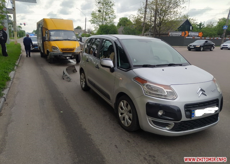 У Житомирі на Київському шосе 29 травня сталася ДТП за участю маршрутки та Сitroen. Від удару в маршрутки відпав бампер.