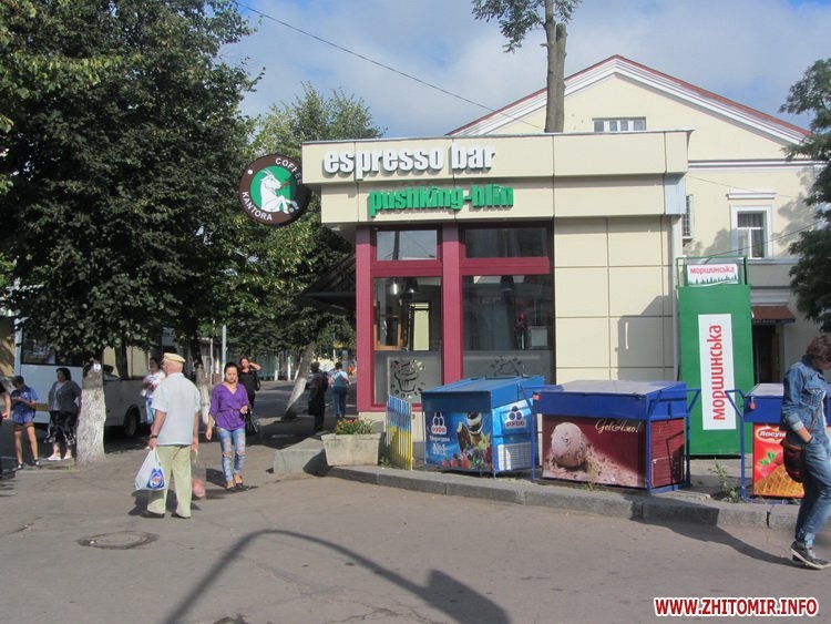 Як повідомляв Житомир.info, в 2014 році в Житомирі на розі вулиць Великої Бердичівської та Івана Кочерги відкрили павільйон, який рішенням виконкому від 9 червня 2014 року підлягав демонтажу, бо ця тимчасова споруда була розміщена «з відхиленням від дозвільної документації».