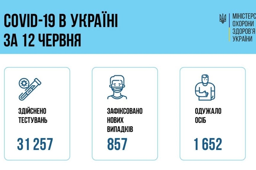 За даними пресслужби МОЗ 13 червня 2021 року в Україні зафіксовано 857 нових випадків захворювання на COVID-19. Серед них – 37 дітей та 17 медпрацівників.