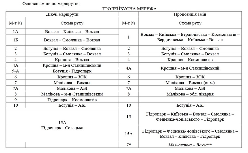 Міська рада також звернула увагу на основні зміни до громадської транспортної мережі: