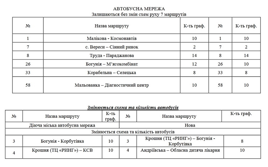 Зміни руху наявних автобусних маршрутів дивіться на фото нижче.