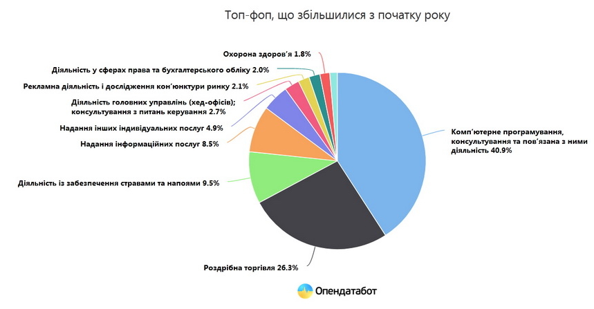 Кількість ФОПів, що займаються інформаційними послугами, зросла на 3284 – з 39 080 до 42 364 (+8%).