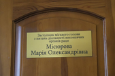 Заступниця міського голови Марія Місюрова, на відміну від своїх колег, принесла на робоче місце і особисте: тут є її спортивні нагороди і пам’ятні сувеніри. А ще у кабінеті дуже багато рослин, що у поєднанні з зеленими стінами створює відчуття перебування на природі.