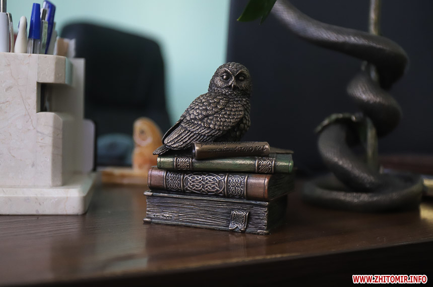 “Не люблю нічого особистого на роботі. Я люблю те, що мене не відволікає. Орхідеї мене не відволікають. За ними мінімальний догляд. Поливаю і вони собі квітнуть. Картина “Ван Гог” - це таке “перехідне знам'я” - раніше вона була у кабінеті Матвія Хрєнова, коли він звільнявся, то передав її Дмитру Ткачуку, а той при звільненні передав картину мені. Пальма - Наталії Чиж, вона теж передала мені її, коли звільнялася”, - розповідає заступниця.