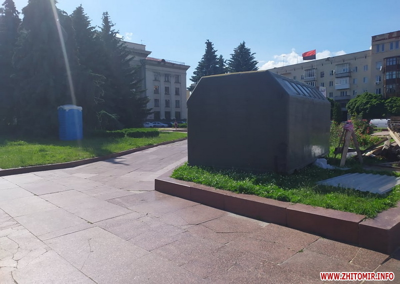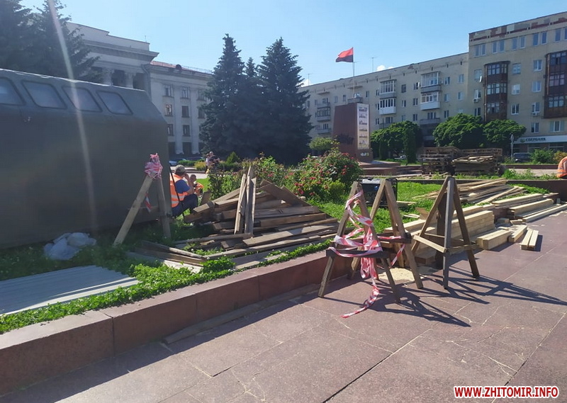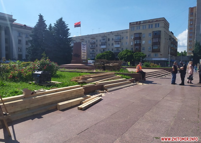 16 червня у центрі Житомира розпочали реконструкцію скверу, де раніше стояв пам’ятник Леніну, а незабаром встановлять 50-метровий флагшток з державним прапором розміром 14х8.
