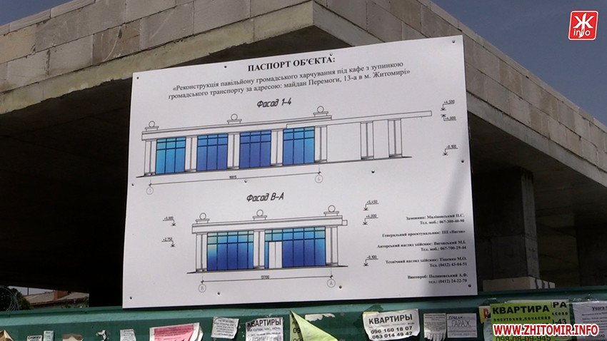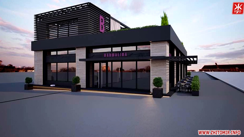 Ще у 2016 році розпочалися будівельні роботи біля трамвайної зупинки на майдані Перемоги. Тоді ж житомирський підприємець Олег Малиновський показував ескізи майбутньої будівлі. А у 2017 році, коли суд за позовом тодішньої архітекторки Житомира Євгенії Черкасової розглядав справу про законність будівництва, підприємець пояснював, що тут має бути одноповерхове кафе «Малина» з літньою терасою на другому поверсі.