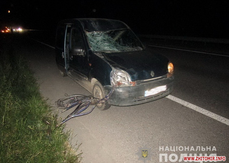 У ніч на 18 червня на трасі Київ-Чоп поблизу села Дідовичі Новоград-Волинського району Renault Kangoo на смерть збив велосипедиста, який перетинав дорогу.