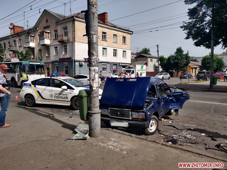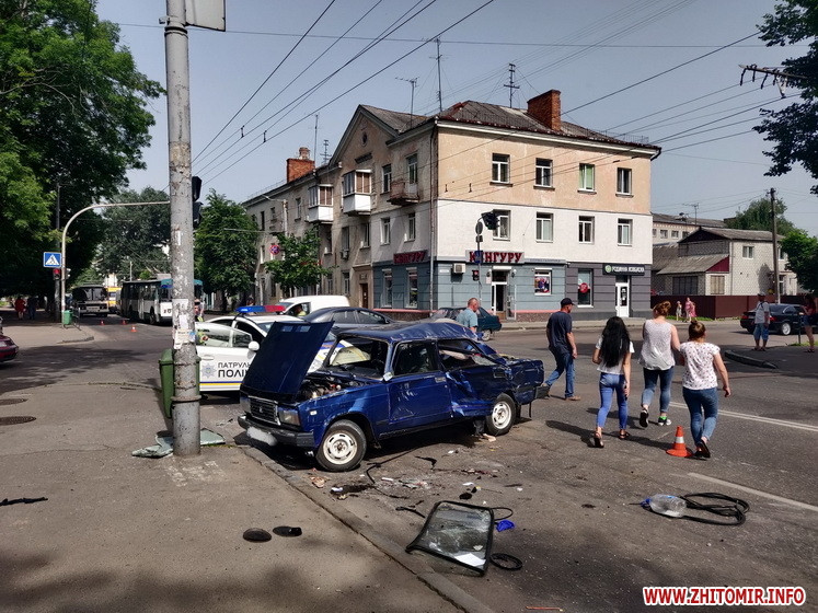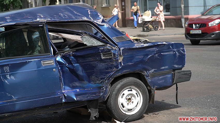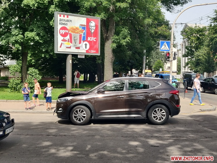 У Житомирі на перехресті Київської та Князів Острозьких 22 червня сталася дорожньо-транспортна пригода за участю ВАЗ та Hyundai: двоє людей отримали травми.