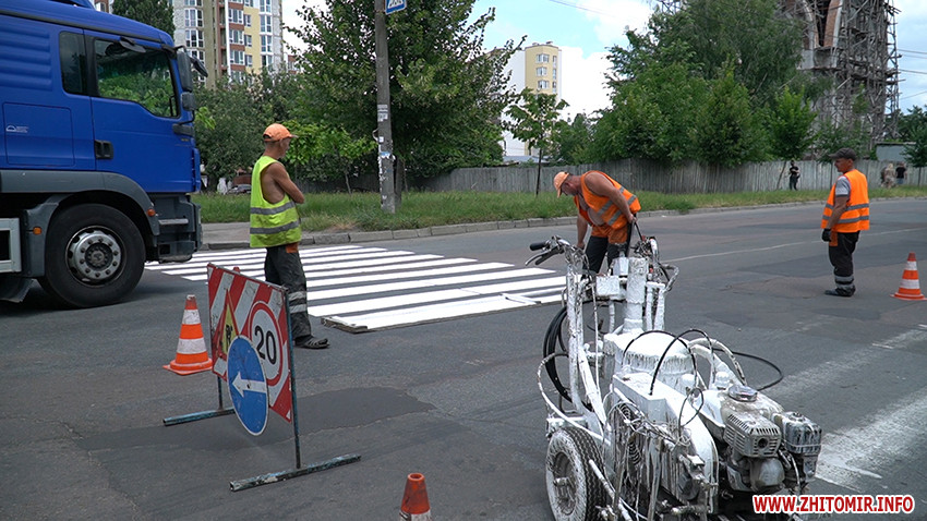 Нагадаємо, 12 травня 2021 року на перехресті біля Водонапірної вежі у Житомирі комунальники почали відновлювати дорожню розмітку. Тоді директор КП «УАШ» Володимир Мазур розповідав, що на магістральні вулиці наноситимуть розмітку після розблокування тендеру.