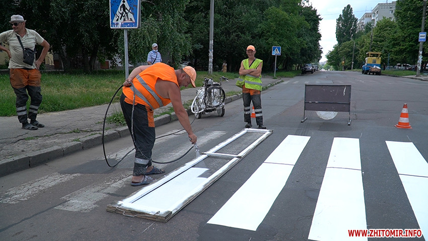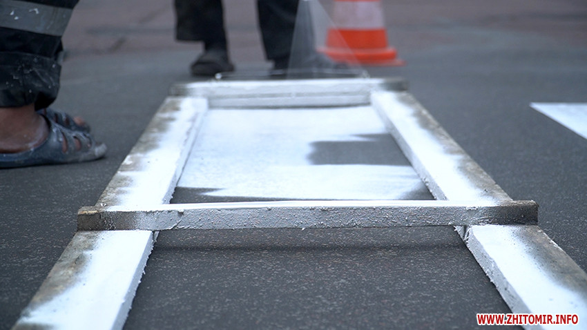 «Сьогодні наше підприємство планує проводити роботи по вул. Хлібній, район Житнього базару, таке перехрестя, як Хлібна-Гоголівська, будемо наносити у нічний час. Чому у нічний час? Тому що базар, люди та іншого часу немає. Також підрядна організація має завершити малі форми на Київське шосе і переходити частково на Параджанова і після Параджанова плануємо зробити Київську - від шляхопроводу до Небесно Сотні. Це та ділянка, де не робили ремонт. Також планують наносити розмітку на Святослава Ріхтера, це холодний пластик, вже після того, як зроблять ремонт. Ще Жуйка, Хлібна після ремонту, частина вул. Грушевського. Покровська, Незалежності, проспект Миру, Чуднівська – там розмітка нанесена. На Чуднівській – холодний пластик, це більш довготривала розмітка, Велика Бердичівська також нанесена розмітка», - розповідає головний інженер КП «УАШ» Юрій Собченко.