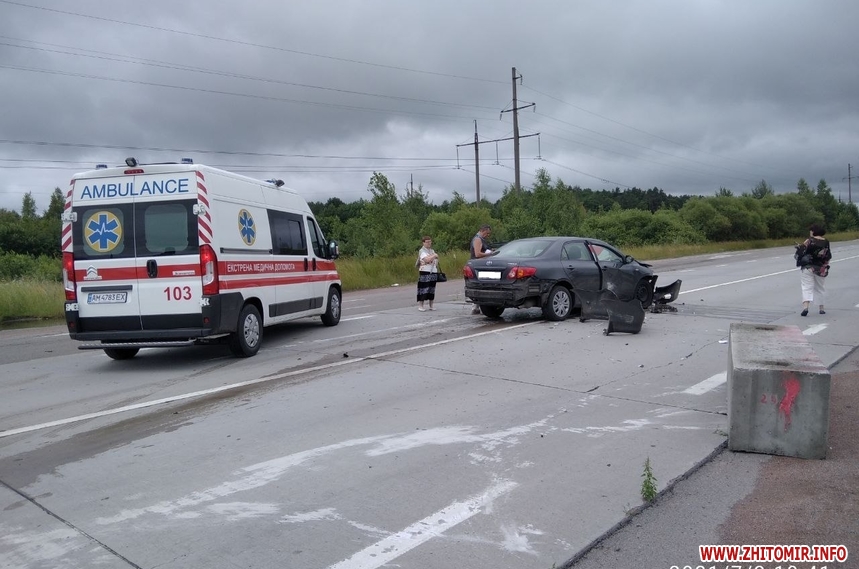Біля села Кам’янка Житомирського району 3 липня сталася дорожньо-транспортна пригода: автомобіль в’їхав у бетонний блок.