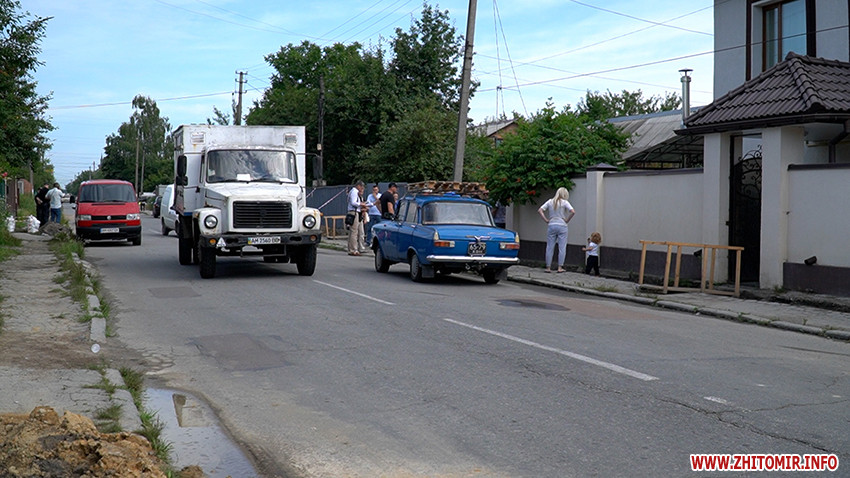 «В першу ніч була, на жаль, вкрадена частина знаків. Тому ми зараз на опорах їх допомагаємо підряднику встановити, тому щоночі їх, на жаль, крадуть. З приводу опорної частини, дійсно опори зараз не стоять, але і проведення робіт, подальше укладання кабелю, який буде під землею і опор, призупинено у зв'язку з тим, що є невдоволення людей. Візуально вбачається, що вони будуть посередині тротуарної частини. По 99% всіх опор, які будуть встановлені - їх буде понад 200 опор - прохідна частина тротуару складає 1,5 метра з одної або з іншої сторони. Вулиця дійсно завузька, але чинні норми, які стосуються пішоходів, вони не порушені», - прокоментував начальник управління транспорту і зв’язку Житомирської міської ради Костянтин Підпокровний.