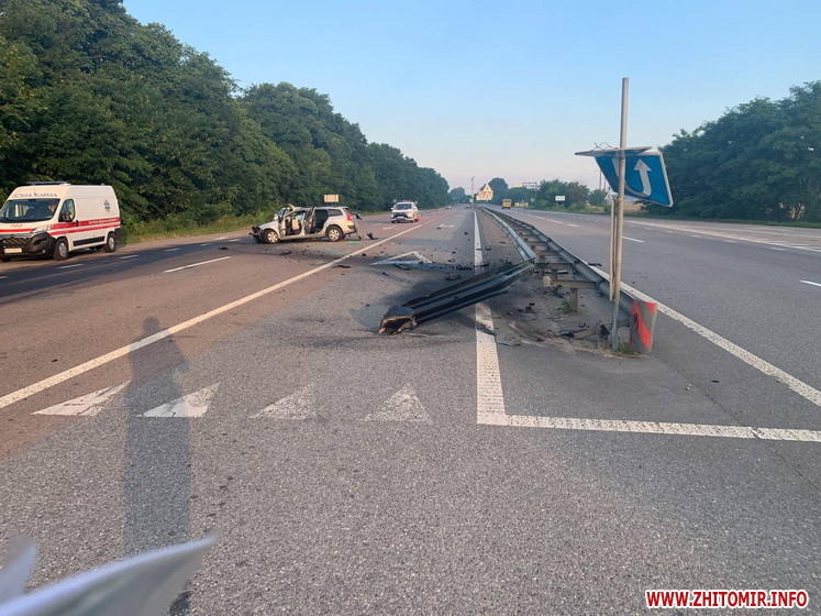 Рано-вранці 11 липня на трасі Київ – Чоп у Житомирській області автомобіль Renault Megane зіткнувся з колесовідбійником. У дорожньо-транспортній пригоді постраждали двоє людей.