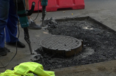 Зранку 23 липня на вул. Київській біля Свято-Михайлівського собору усувають недоліки, які були виявленні після капітального ремонту дорожнього покриття у 2020 році.