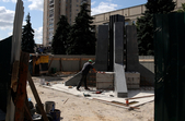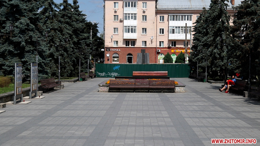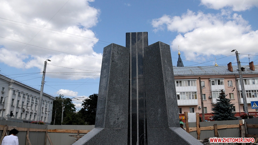 У центрі Житомира продовжуються роботи зі спорудження пам’ятника «Захисникам України у війні з російським агресором». Вже встановили чотири гранітних стели, наразі тривають підготовчі роботи для облаштування сходів. Головний елемент пам’ятника – бронзові фігури.