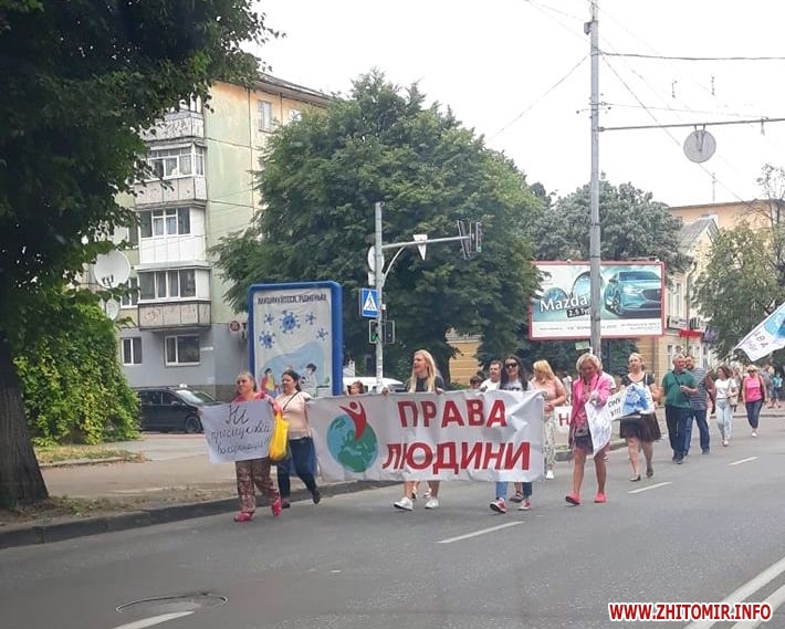У Житомирі 24 липня приблизно два десятки людей вийшли на ходу проти примусової вакцинації від коронавірусної інфекції.