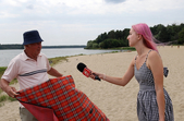 «Мені тут дуже подобається, я тут народився, вже на пенсії, працюю та живу у Харкові. Кожен рік сюди приїжджаю. Пам'ятаю цей пляж ще, уявляєте, з 60-х років, він був ось (показує в кінець пляжу), там збиралися в основному, потім відкрили цю площадку, тут більше молодь збиралася. Мене зараз дивує, чому сюди ніхто не ходить відпочивати. Ну сьогодні понеділок, а вчора, позавчора була субота, куди дівається молодь?», – відповідає Анатолій.