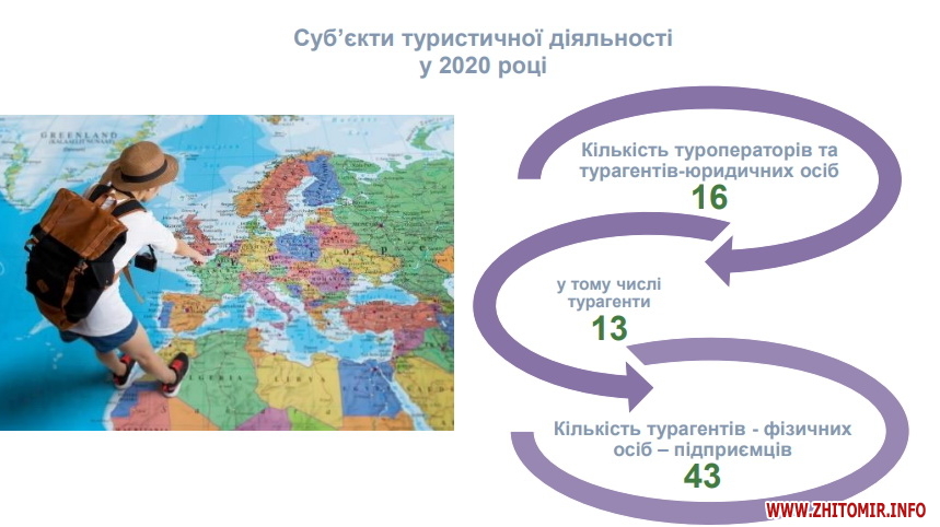 Варто зауважити, що роком раніше, у 2019-му, кількість жителів Житомирської області, які виїжджали за кордон, була майже вдвічі більшою – 19 203 особи. Та й географія поїздок була ширшою: жителі області у 2019 році відвідали 46 країн світу. Очевидно, що на ситуацію в туристичній сфері вплинула пандемія коронавірусу і карантин, який в Україні розпочався навесні 2020 року.