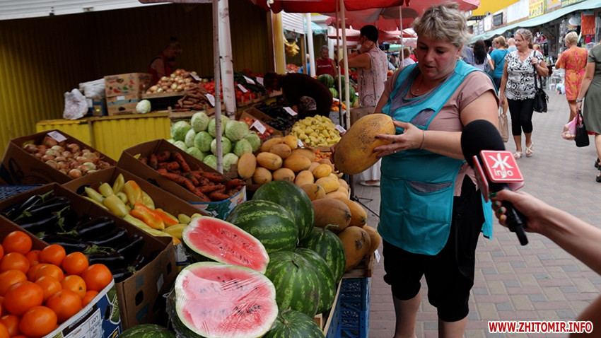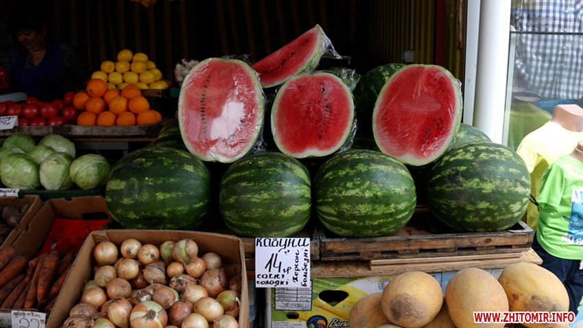 У Житомирі на Житньому ринку з’явилися кавуни та дині привезені з Херсонщини. Ціна на кавун сягає 15 грн за кілограм, а от вартість дині коливається в межах від 10 до 19 грн. Продавчині запевняють, що плоди стиглі та смачні, а також діляться порадами, як їх обрати.