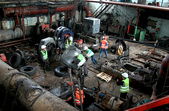 «Наше завдання на сьогоднішній день – в першу чергу запустити один з насосних агрегатів, щоб припинити скид стічних вод в річку і розпочати його перекачувати на очисні споруди каналізації. Для того нами було вивезено двигуни насосних агрегатів до спеціальних сушарок, там вони протягом доби проходили процес висушування, і зараз ми монтуємо перший двигун насосного агрегату № 3 для того, щоб сьогодні запустити його в роботу і почати процес перекачки. На підході в нас другий двигун, який ми плануємо забрати сьогодні з м. Бровари, де він також проходить процес сушки і також його завтра ввести в експлуатацію. Ми плануємо, що в цей день запрацює насосний агрегат № 3, але ми говоримо про це дуже обережно, бо багато нюансів, все ж таки всі двигуни були затоплені», — розповідає Андрій Нікітін.