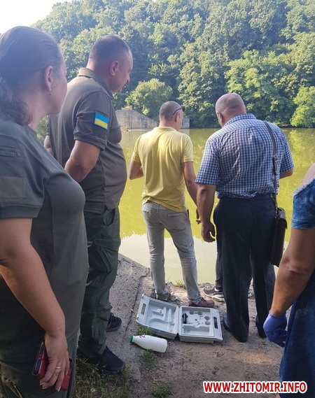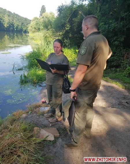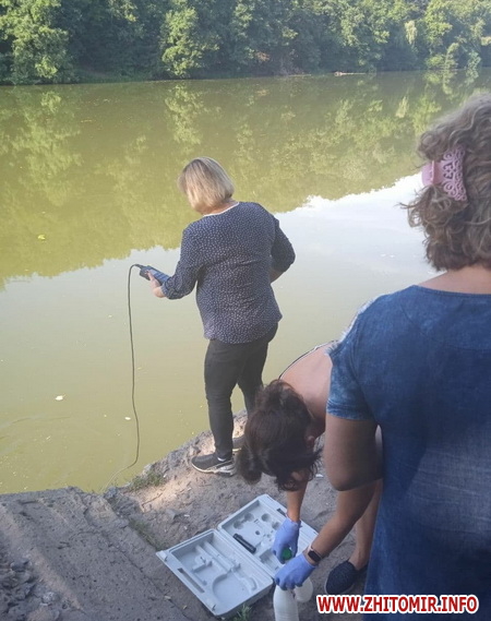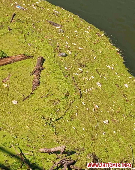 «На річці Тетерів сталася масова загибель водних біоресурсів. 9 серпня на р. Тетерів, поблизу картонного комбінату у м. Житомир зафіксовано масову загибель риби. На місце події прибули працівники Житомирського рибоохоронного патруля, Держекоінспекції та КП «Житомирводоканал». Працівниками відділу інструментально- лабораторного контролю Державної екологічної інспекції Поліського округу відібрано проби води на дослідження. Проби відібрані на ділянці 200 метрів вище дамби. Заміри розчинного кисню становлять - 2,8 мл\літр. Вода брудна, сіро-зеленого кольору, стоїть неприємний запах. Проведено обстеження берегової лінії на р. Тетерів, в районі дамби, поблизу картонного комбінату м. Житомир. Іхтіологами на даний час вже нараховано 2,5 тис. екз. загиблої риби. Підрахунки ще ведуться», - зазначили в рибоохороні.