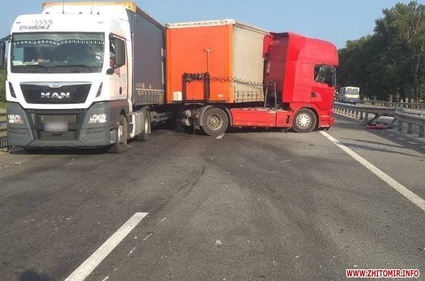 На трасі Київ-Чоп у Житомирській області 11 серпня сталася дорожньо-транспортна пригода за участі вантажівки та легковика.