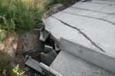 Нагадаємо, у вересні 2019 дорожники провели виїзду нараду і з’ясували, чому на відремонтованому мосту в Радомишлі розмило ґрунт і просіли бордюри:. Це сталося, бо місцеві комунальники самовільно закрили водоприймальні колодязі.