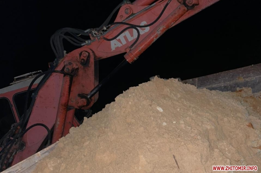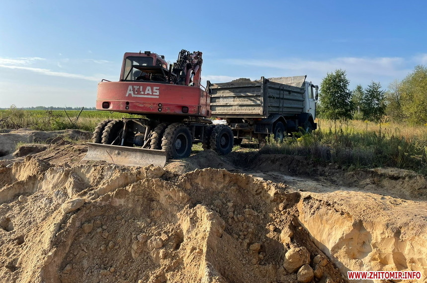 Крім цього, 19.08.2021, вночі, правоохоронцями задокументовано ще одне місце незаконного видобутку піску на земельній ділянці, розташованій між селом Грозине та містом Коростень, до якого причетні ці ж фігуранти кримінального провадження. На місці злочину виявлено та вилучено трактор та дві вантажівки марки МАЗ, наповнені незаконно видобутим піском.