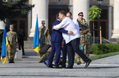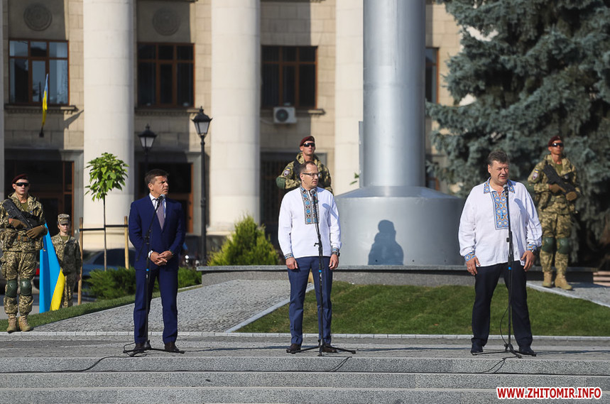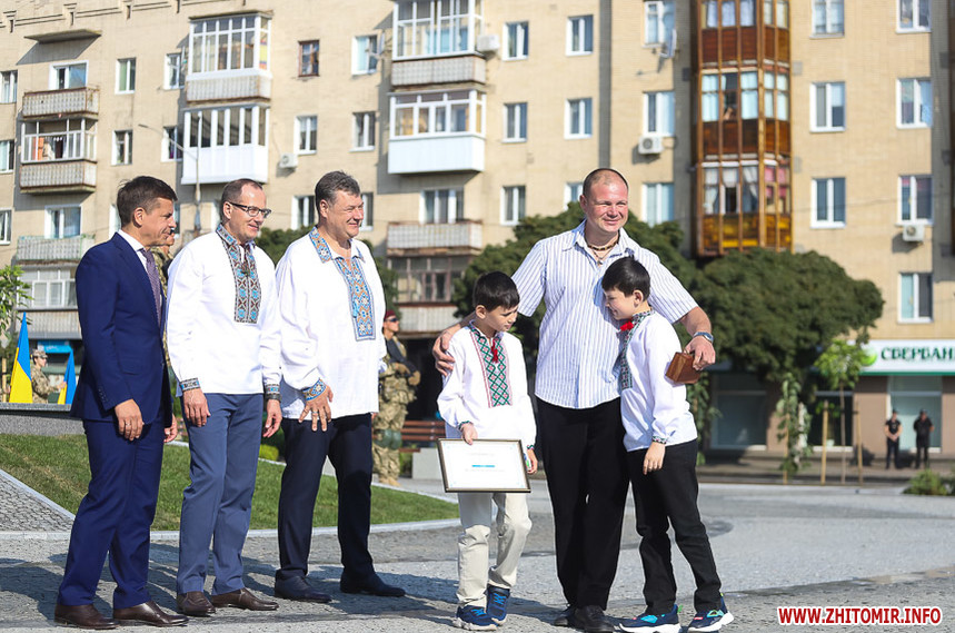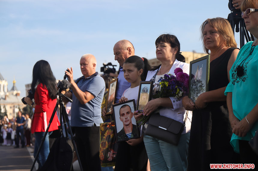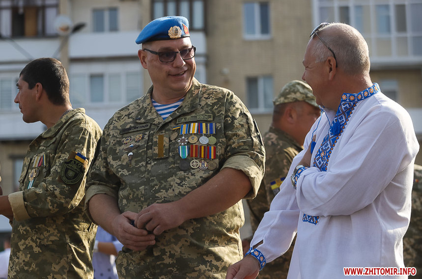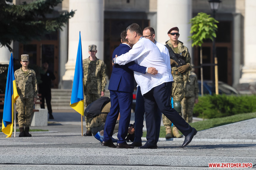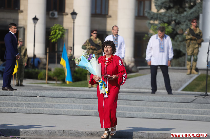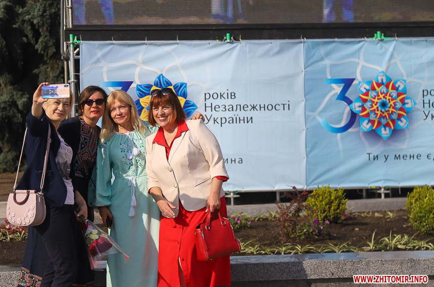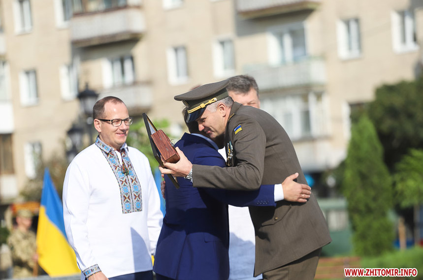 Після урочистого підняття прапора нагородили видатних житомирян, військовослужбовцям вручили нагороди, ордени та ключі від квартир. Затим усі охочі робили фото та селфі на фоні прапора, не шкодували один одному усмішок і щиро обіймалися.