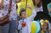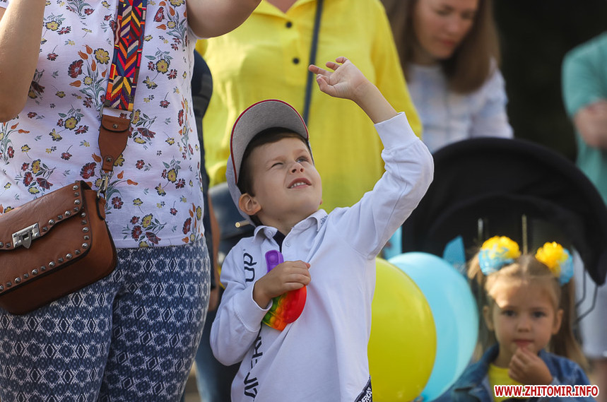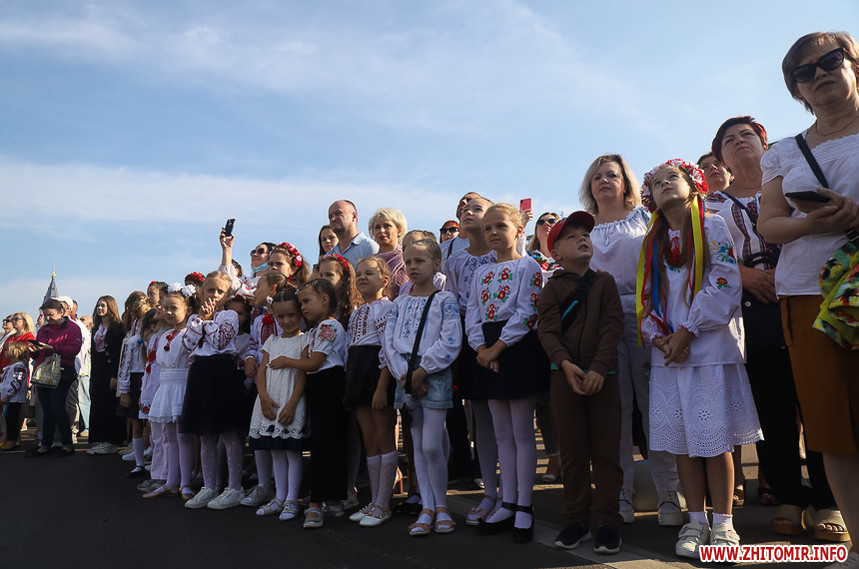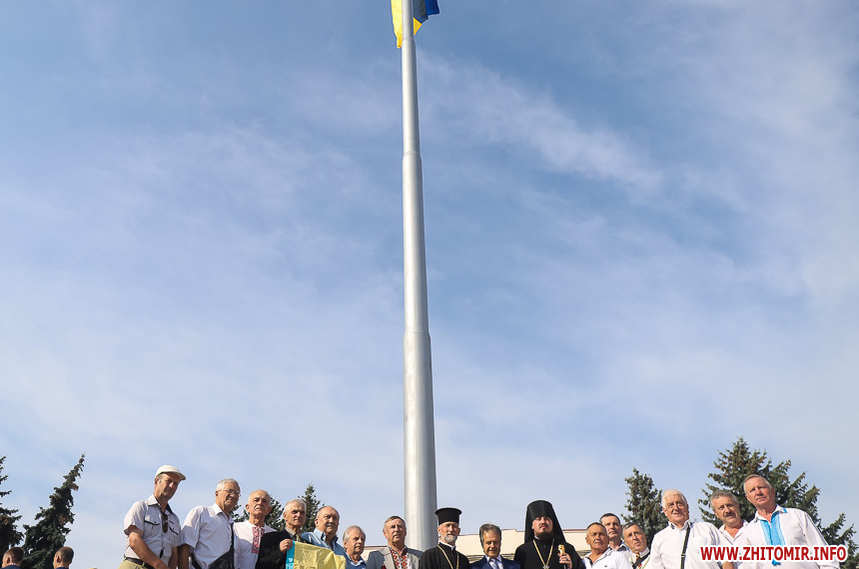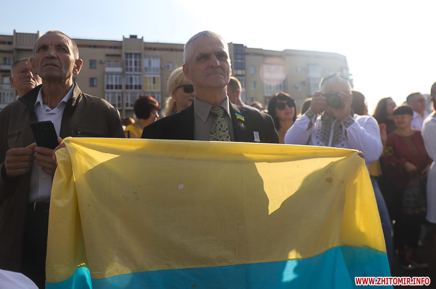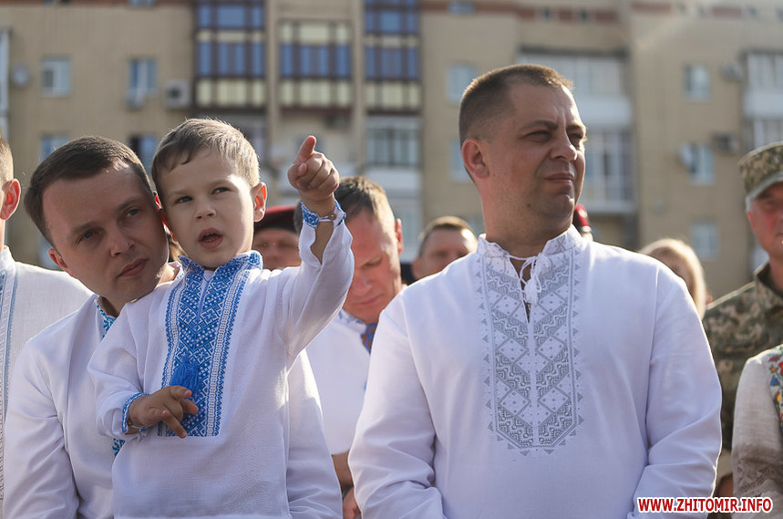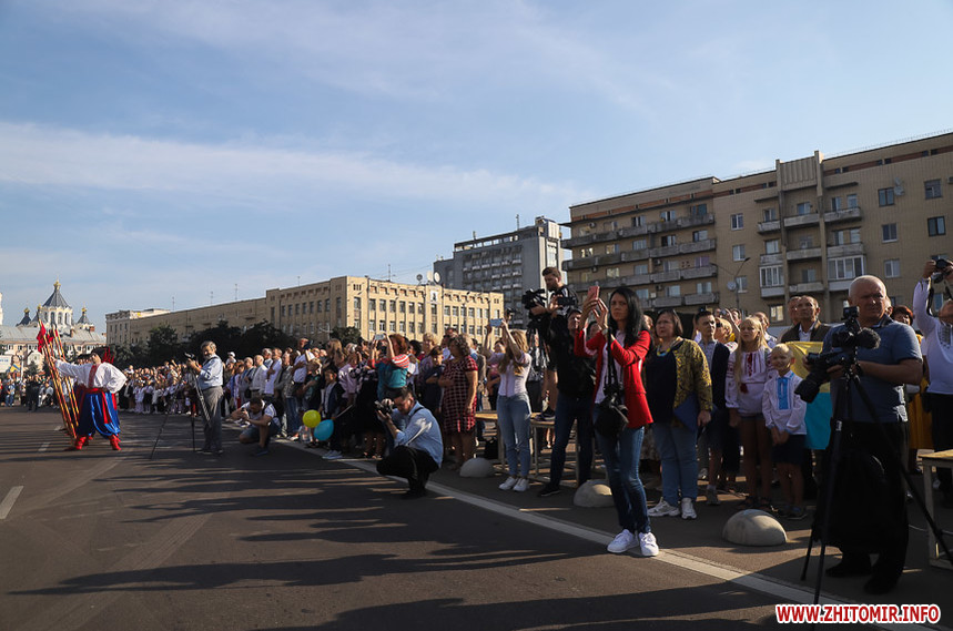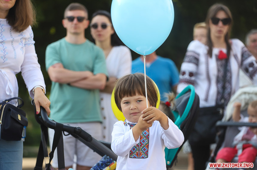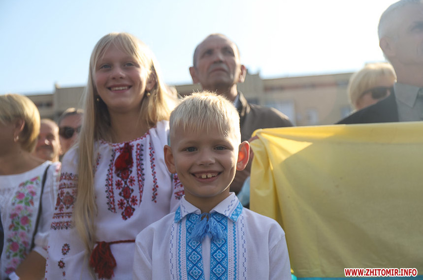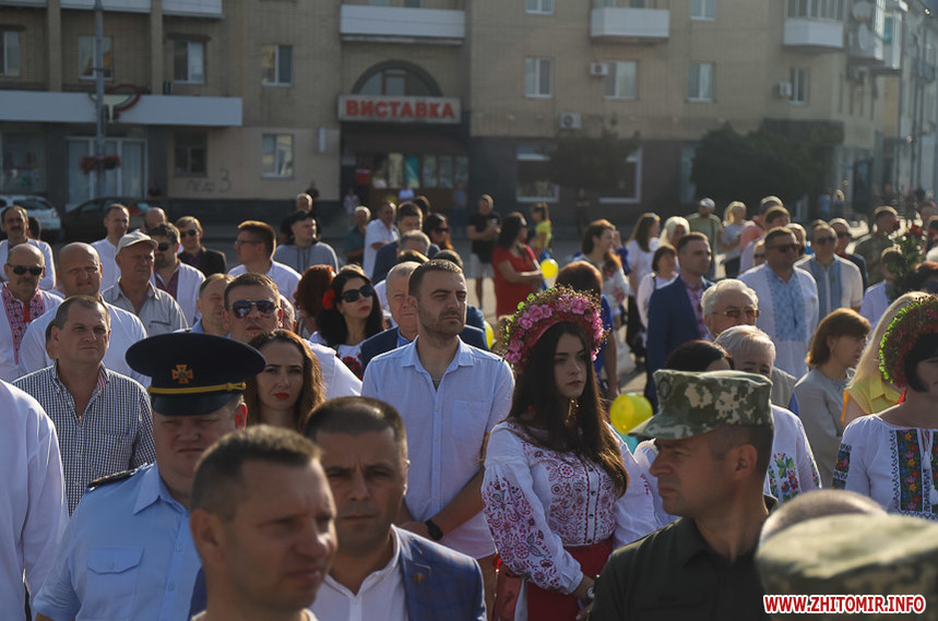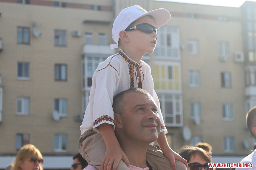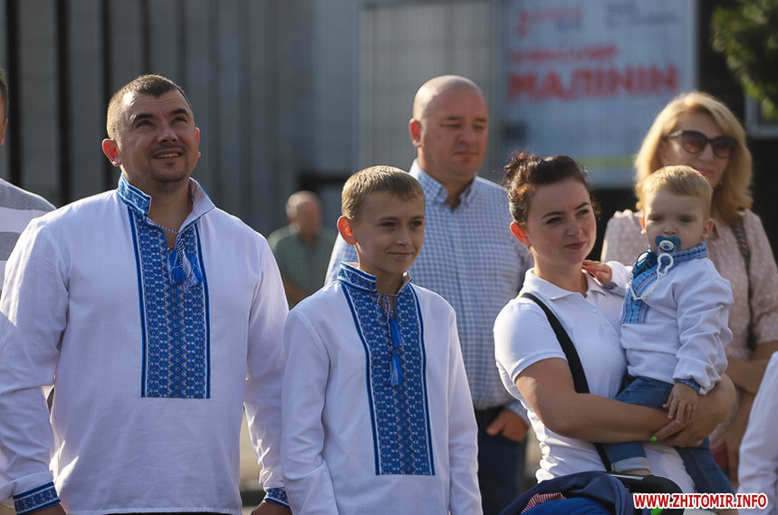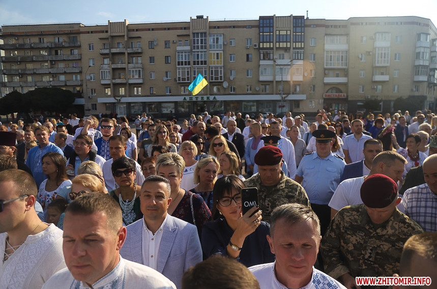 Святкування цього року було й незвично велелюдним: ще з 8:30 год. житомиряни, дорослі й малі, вбрані у вишиваний одяг або з елементами державної символіки, почали збиратися у центр міста з родинами і друзями, аби долучитися до важливої події й помилувалися стягом, що здійнявся під небо.