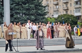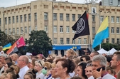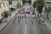 У вишиваних сорочках і сукнях, з квітами, з державними прапорами та у піднесеному настрої містяни пройшли вулицями міста урочистою ходою, вітаючи один одного зі святом.