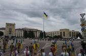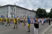Колони прямували одночасно з трьох точок – від пам’ятників Тарасу Шевченку, Олегу Ольжичу, Івану Огієнку – та зійшлися на майдані Соборному. Там містян розважали художні колективи, а в небі ширяла авіація.