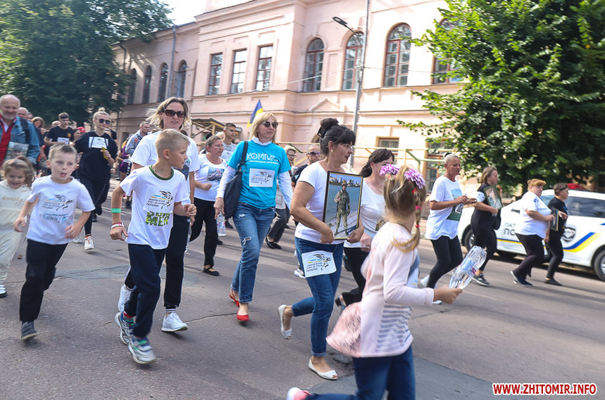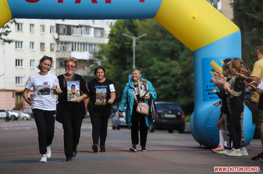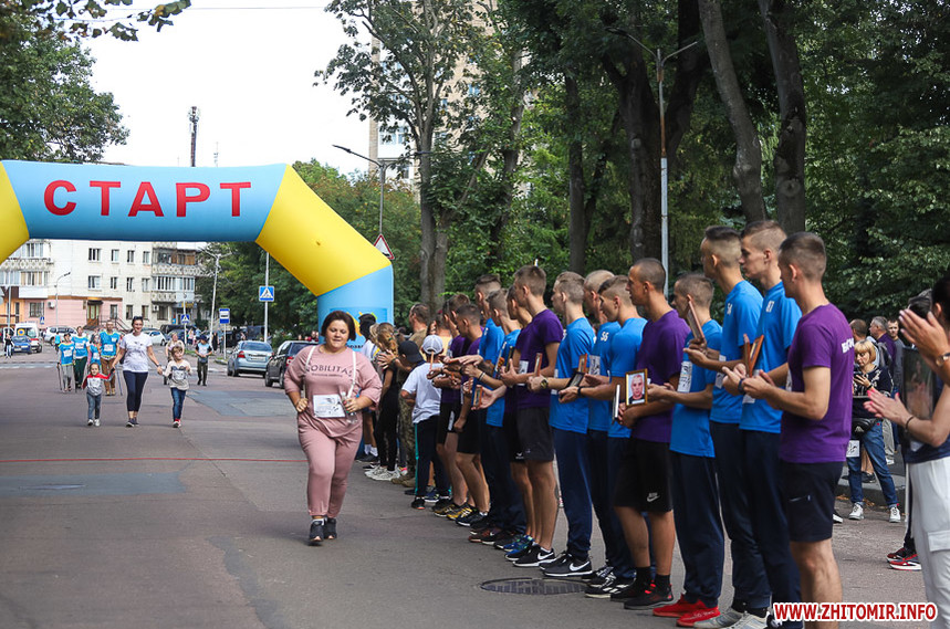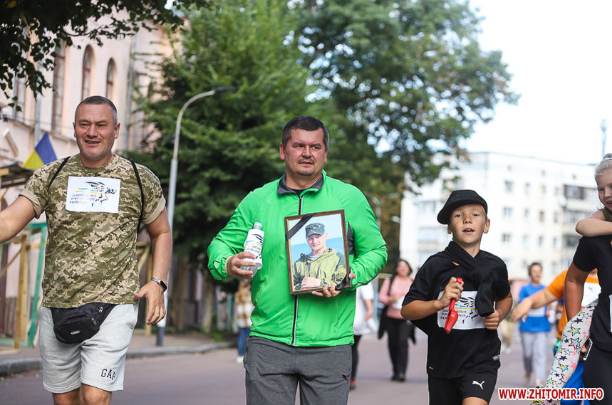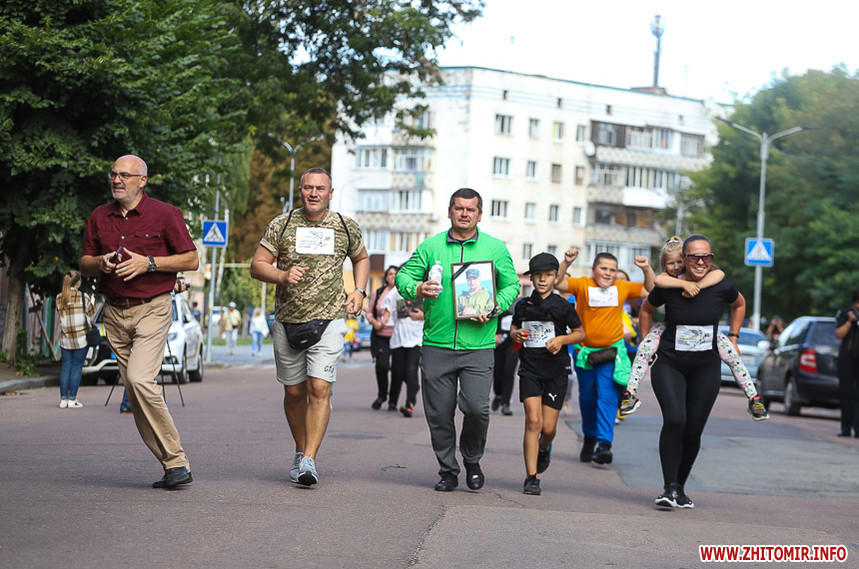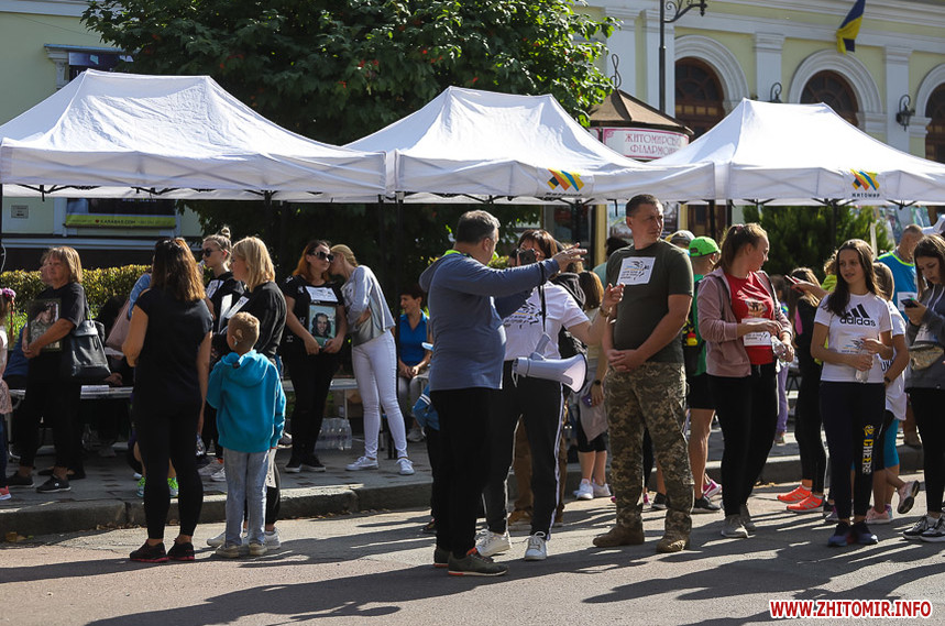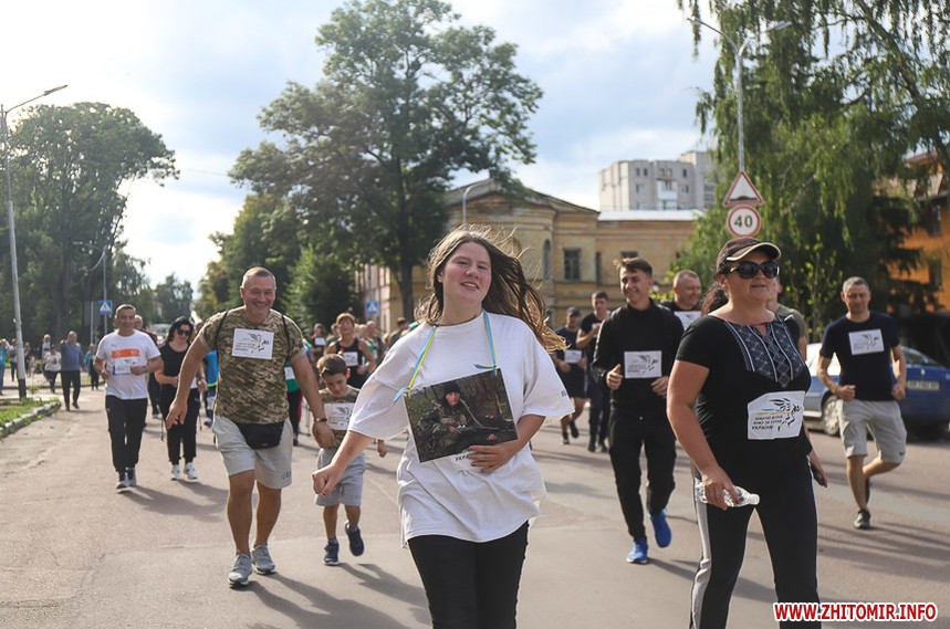 Забіг розпочався біля Житомирської обласної філармонії, де на сходах облаштували «фотоалею пам’яті», яка складається з 74 світлин загиблих Героїв.