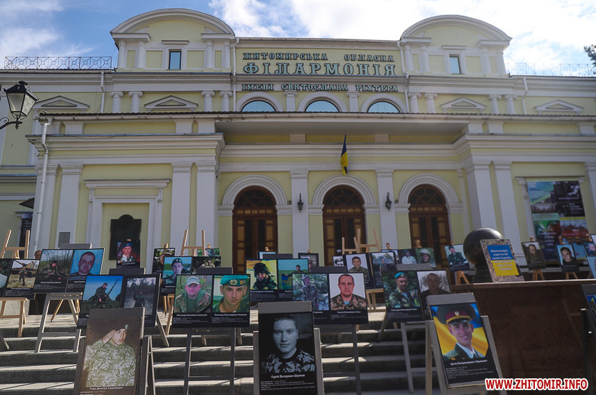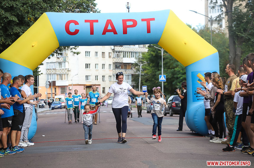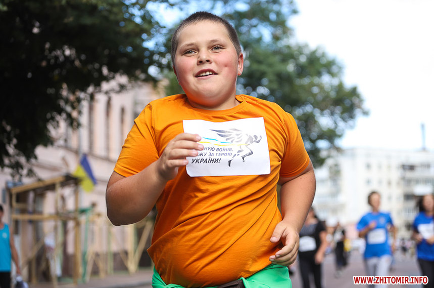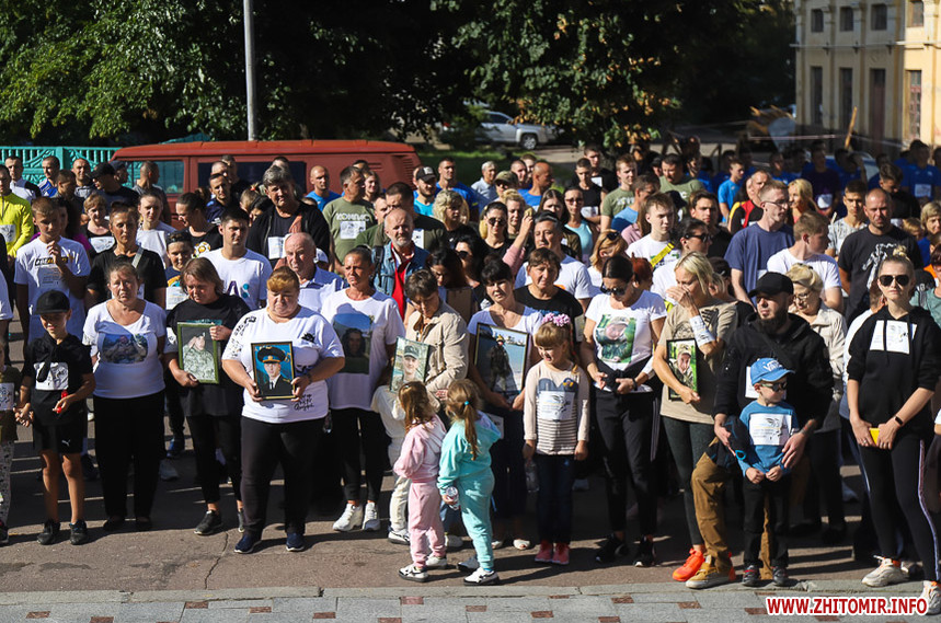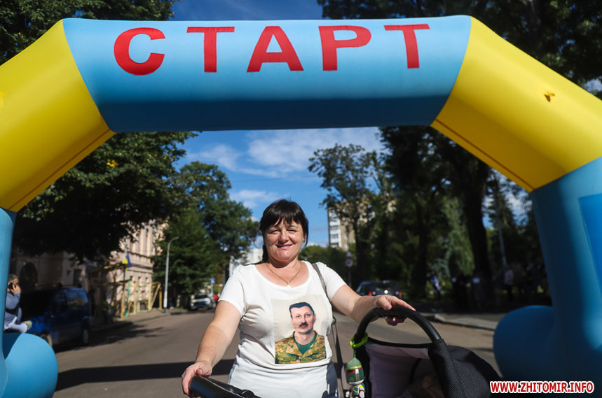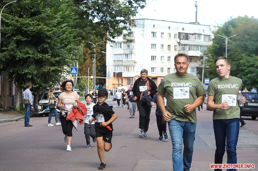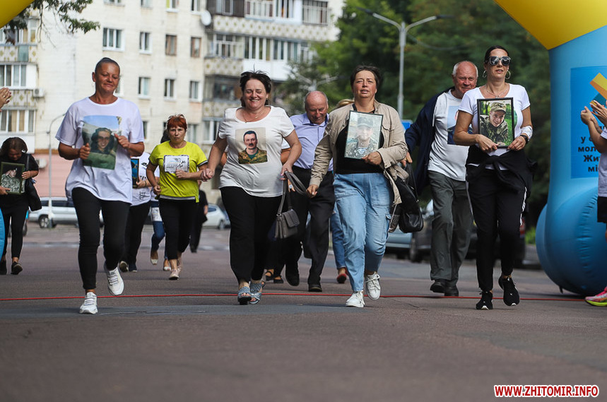 Забіг розпочався біля Житомирської обласної філармонії, де на сходах облаштували «фотоалею пам’яті», яка складається з 74 світлин загиблих Героїв.