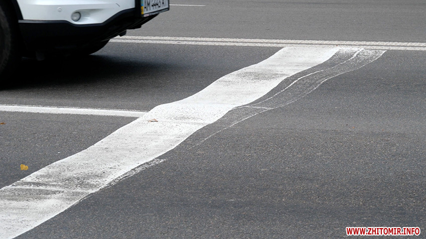 «За результатами огляду даного відрізку дороги інженером технічного нагляду були виявлені недоліки: в покритті асфальтобетонного покриття місцями є деякі нерівності, а також є нерівності в місцях встановлення люків, дорожня розмітка, яку нанесли восени, прийшла у непридатний стан та потребує оновлення, невідновлена цілісність покриття у місцях відбору кернів», - говорить начальник відділу експлуатації, утримання та безпеки дорожнього руху департаменту регіонального розвитку Житомирської ОДА Олександр Бовсунівський.